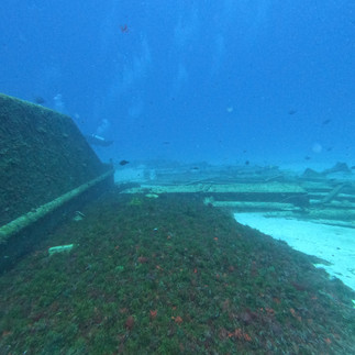 Because the shipwreck is upside down, it is not possible to enter it. However, divers can still engage in a variety of exciting activities around its exterior. The debris from the helm and the small rock piles create an ideal environment for discovering marine life. The wreck's surrounding area has flourished, turning it into a captivating underwater site rich with diverse sea creatures, including green moray eels, snapper, and barracuda. It's a fantastic location for observing schools of spotted eagle rays.