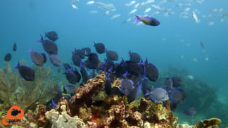 The shallow waters mean a large amount of marine life can be viewed from above and below the water. There are many coral plantations around the park to aid in the restoration of the Elkhorn and Staghorn coral. The Blue Tang and Sergeant Majors are the most common fish here, but large schools of Yellow Tail Snappers are always found around the reef. Parrotfish, butterflyfish, Trunk and Cowfish, Stonefish, Lionfish (unfortunately) and the occasional Nurse Shark, Rays (both Southern and Spotted Eagle), and Turtle (Hawksbill, Green, and Loggerhead), to name but a few of the reefs inhabitants, are features of this incredible dive.