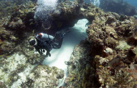 The reef features long overhangs and experiences some current, which helps maintain a healthy ecosystem. Light penetrates the clear water effortlessly, resulting in vibrant colours that make it an excellent dive site for photographers. It also offers a fascinating and relaxing drift diving experience. Over thousands of years, the reef has developed due to this region's currents, attracting many pelagic marine species. Its alignment with these currents allows divers to easily follow the coral-covered edge and enjoy a smooth and relaxing drift dive.